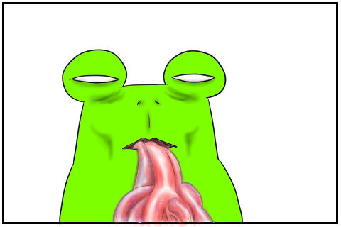 し、心臓が出ていますが…。あ、でもカエルは内臓が飛出しても、中に戻せば大丈夫なんでしたっけ。