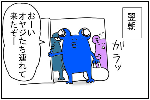 青ガエルさんは、むらこちゃんの細腰(まだこの時点では!)を