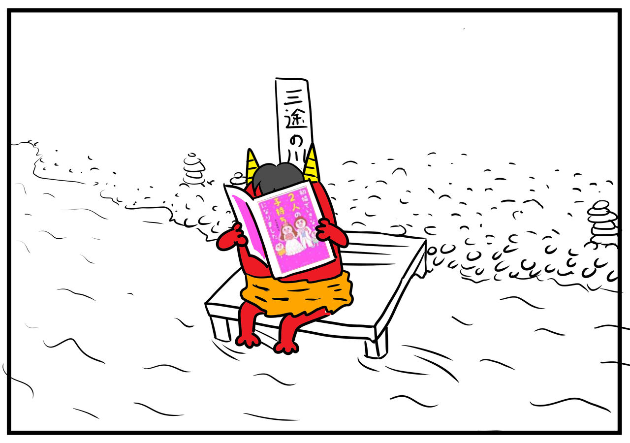 六文銭 2016年12月14日 登場人物はこちら最初から読むならこちら 夫婦の出会いはこちら 出典 真田家の館ビタ一文あげたくない。どれか1つはおまけの1コマだよ!増えてる!飲み会の季節になったね!男同士で飲みに行くと変なとこ行きそう!だんなの士気を下げよう!そしてそして自慢しちゃうよ!我が家はステップファミリーのネコおやじ師の書籍が先日出たんだけど、初婚でいきなり2人の子持ちになりました (すくパラセレクション) [単行本]ネコおやじ竹書房2016-09-29どけでんドアでサイン入りが届いたよわはは~い!心の友よ!嬉しいわい!タイトル通り、初婚で2人の子持ちの葛藤が苦労がわかる一冊!誰でもはできん。ネコ師だから出来たんじゃ。えらい!あ、私師匠師匠呼ばれてますが、みんなたんなるあだ名的なものと受け止めてるよ!長くなりすぎたからコメント御礼は次回します!いつもありがとう!それでは今日も読んで頂きましてありがとう!またよかったら来世でも暇な時に来てね!三途の川の渡し守の鬼さんも、読める一冊。今日はハムスターの双子ちゃんでふわふわ~♡登録すると更新通知が来ていち早く読めるらしい。 「むらこ」カテゴリの最新記事 < 前の記事次の記事 > コメント コメント一覧 (26) 1. 広福ライナーの魔女 2016年12月14日 19:20 |д・) ソォーッ…お久しぶりにコメします(^_^;) むらこさん、GJです!爆笑して白バラコーヒーを噴きましたw オマケの追加された人は…( ゚д゚)ハッ! イワナイデオコウw 六文銭で思い出した、実家にある江戸時代のお金を週末見に行ってきます。 2. げら 2016年12月14日 19:48 行ってらっしゃ~い♪ せめて、天国へ~(^_^;) 女性は三途の川を渡るときは“初めて”の男性に背負われてその川を渡るという説があるんだって!男の人は…どうなんやろ… 3. りかりか 2016年12月14日 20:15 お二人様行ってらっしゃ〜い♩ 4. nanana 2016年12月14日 20:17 思いっきり吹いたww いってらっしゃいませ♪(笑) 5. ねうろ 2016年12月14日 20:19 三途の川の鬼さんのキャラ好きですわwww 6. えぴ 2016年12月14日 20:22 一人より二人、まとめてお得ですもんね♡ 7. うっど 2016年12月14日 20:32 {三途の川、2名サマお渡りでーす! イッテラッシャーーイ!!(*`・ω・*) 渡し守の鬼さん、サービスしてくれるんですねwww 8. メメ 2016年12月14日 20:46 パパさんと義父さんがあの世へ 連れていかれてますね 悪いことしたらしょうがないですよね 鬼さんがひとりサービスしてくれて ラッキーでしたね(笑) 9. さくら 2016年12月14日 20:48 2人以上は割引アリなのかな( ̄∀ ̄) うちは3人お願いしたいんですが、どれくらいサービスして貰えるかな(・∀・) 10. あか男 2016年12月14日 21:17 僕はいつも早起きだけど、一文も得してないな〜 11. むちこ 2016年12月14日 21:22 三途の川の後は地獄コースですね。 12. SONY 2016年12月14日 21:34 渡し守の赤鬼さん(人・㉨・)♡ かわいー! ももママさんの本読んでるしwww 文無しに6文の追い銭でいってら~^^ オマケの6文でもう一人www 良い船旅をwww 13. 幸明 2016年12月14日 22:04 親子で仲良く行ってらっしゃいまし〜〜(* ̄m ̄)♡ 2人なら淋しくない! 14. 椿 2016年12月14日 22:18 あら、二人…(´Д`) 15. まるこ 2016年12月14日 22:51 いついつも、更新たのしみに待ってます! ありがとうございます!ブログ書いて下さって😭 三途の川まで、お見送りなんて優しい~ですね、むらこさん(笑) 16. ばにー 2016年12月14日 23:03 せっかくお勉強してたのにー! GWに沼田城近くの真田丸展に行ったら、六文銭クッキーやらドーナツやらせんべいやらまんじゅうやら盛りだくさん売ってたなー。 17. かんちゃん 2016年12月14日 23:39 あ~良かった!ギッフーより先にパパエモンが逝ったら…一緒ならいっかぁ 18. のぞみ 2016年12月15日 00:45 こんばんは。 流す為なら出費も厭わない…(笑)。 何だろう…何かこの鬼さん、可愛くて好きです♪(笑) 19. AZU. 2016年12月15日 01:26 あら、ぱぱえもんだけじゃなかったのね(^◇^;) 一名追加したのに鬼さんサービスいいねw 20. 6cm♪ 2016年12月15日 04:50 おまけ最高♪ そして、そのお金は勿論 壺からだよね! w 21. のきざる 2016年12月15日 08:05 おまけ、うけましたw 今回もむらこさんのお笑いのセンスの嫉妬w 22. ぶりじん 2016年12月15日 09:13 三途の川の鬼はなしわかるーww 23. puku 2016年12月15日 10:33 いつも楽しく読ませてもらってます。 今日は思わずコメントさせてもらいました(*^^*) うちのも1人、船に乗っけてもらいたいです(笑) きつめに縛って(笑) むらこさんの笑いに救われてます☆ 24. あおちゃん 2016年12月15日 17:50 お金って色んな使い道あるんだねぇ。 私も三人ほど、追加で。 25. なおみ 2016年12月15日 21:42 本読んでる鬼さんがすごいかわいい…… 26. いちふぁん 2016年12月15日 23:10 ぱぱさん、エライと、思ったのに、、 困ったオッサンや むらこさま童話作家になれば いいのに、絵もむらこさまでね 三途の川の絵が好き 赤鬼さんの絵も好き コメントフォーム 名前 コメント 記事の評価 リセット リセット 顔 星 情報を記憶 コメントを投稿する